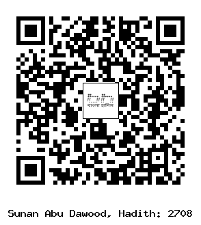 ২৭০৮। রুয়াইফি ইবনু সাবিত আল-আনসারী (রাঃ) সূত্রে বর্ণিত। নবী সাল্লাল্লাহু আলাইহি ওয়াসাল্লাম বলেনঃ যে ব্যক্তি আল্লাহ ও আখিরাতের উপর ঈমান রাখে সে যেন মুসলিমদের ’ফাই’লব্ধ পশুর পিঠে সাওয়ার না হয়। সে সাওয়ারী হিসাবে ব্যবহার করে তাকে দুর্বল করে গানীমাতে ফেরত দেয় (এরূপ করা উচিত নয়)। যে ব্যক্তি আল্লাহ ও আখিরাতের প্রতি ঈমান রাখে, সে যেন মুসলিমদের গানীমাতের পোশাক না পরে, এমন কি সে তা পুরাতন করে গানীমাতে ফেরত দেয় (এটা ঠিক নয়)।[1]