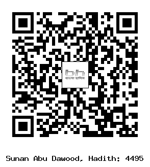 ৪৪৯৫। আবূ রিমসাহ (রাঃ) সূত্রে বর্ণিত। তিনি বলেন, আমি আমার পিতার সঙ্গে থাকা অবস্থায় নবী সাল্লাল্লাহু আলাইহি ওয়াসাল্লাম আমার পিতাকে প্রশ্ন করলেনঃ সে কি তোমার ছেলে? তিনি বললেন, হ্যাঁ, কা’বার রবের কসম! তিনি (সাল্লাল্লাহু আলাইহি ওয়াসাল্লাম) বললেনঃ ঠিক বলছো তো? তিনি বললেন, আমি এ ব্যাপারে সাক্ষ্য দিচ্ছি। বর্ণনাকারী বলেন, আমার পিতার সঙ্গে আমার সাদৃশ্য এবং আমার সম্পর্কে পিতার কসমকে কেন্দ্র করে রাসূলুল্লাহ সাল্লাল্লাহু আলাইহি ওয়াসাল্লাম মুচকি হেসে বললেনঃ ’’জেনে রাখো! তার কোনো অপরাধ তোমাকে অভিযুক্ত করবে না এবং তোমার কোনো অপরাধের জন্যও সে অভিযুক্ত হবে না।’’ অতঃপর রাসূলুল্লাহ সাল্লাল্লাহু আলাইহি ওয়াসাল্লাম তিলাওয়াত করলেনঃ ’’তোমাদের কাউকে অপরের পাপের বোঝা বহন করতে হবে না।’’ (সূরা আন’আমঃ ১৬৪)।[1]