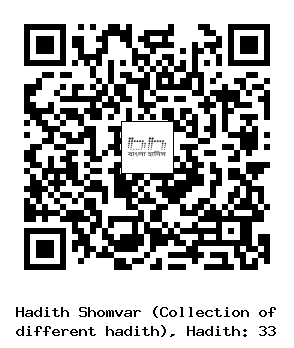 (৩৩) আবূ যার (রাঃ) কর্তৃক বর্ণিত, রাসূলুল্লাহ সাল্লাল্লাহু আলাইহি ওয়াসাল্লাম বলেছেন, আল্লাহ আযযা অজাল্ল বলেন, যে ব্যক্তি একটি নেকী করবে তার জন্য দশ গুণ নেকী রয়েছে অথবা ততোধিক বেশী। আর যে ব্যক্তি একটি পাপ করবে তার বিনিময় (সে) ততটাই (পাবে; তার বেশী নয়) অথবা আমি তাকে ক্ষমা করে দেব। আর যে ব্যক্তি আমার প্রতি এক বিঘত নিকটবর্তী হবে, আমি তার প্রতি এক হাত নিকটবর্তী হব। আর যে ব্যক্তি আমার প্রতি এক হাত নিকটবর্তী হবে আমি তার প্রতি দু’হাত নিকটবর্তী হব। যে আমার দিকে হেঁটে আসবে আমি তার দিকে দৌড়ে যাব। আর যে ব্যক্তি প্রায় পৃথিবী সমান পাপ করে আমার সঙ্গে সাক্ষাৎ করবে, অথচ সে আমার সাথে কাউকে শরীক করেনি, তার সাথে আমি তত পরিমাণই ক্ষমা নিয়ে সাক্ষাৎ করব।