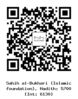 ৫৭০০। মুহাম্মাদ (রহঃ) ... আয়িশা (রাঃ) থেকে বর্ণিত। তিনি বলেন, রাসূলুল্লাহ সাল্লাল্লাহু আলাইহি ওয়াসাল্লাম এর সামনেই আমি পুতুল বানিয়ে খেলতাম। আমার বান্ধবীরাও আমার সঙ্গে খেলতো। রাসুলুল্লাহ সাল্লাল্লাহু আলাইহি ওয়াসাল্লাম ঘরে প্রবেশ করলে তারা দৌড়ে পালাত। তখন তিনি তাদের ডেকে আমার কাছে পাঠিয়ে দিতেন এবং তারা আমার সঙ্গে খেলা করত।