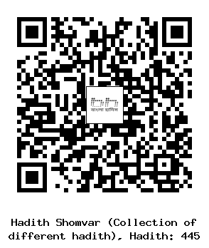 (৪৪৫) আবূ যার্র বলেন, নবী সাল্লাল্লাহু আলাইহি ওয়াসাল্লাম বলেছেন, আল্লাহ আযযা অজাল্লা বলেন, যে ব্যক্তি একটি নেকী করবে, তার জন্য দশ গুণ নেকী রয়েছে অথবা ততোধিক বেশী। আর যে ব্যক্তি একটি পাপ করবে, তার বিনিময় (সে) ততটাই (পাবে; তার বেশী নয়) অথবা আমি তাকে ক্ষমা করে দেব। আর যে ব্যক্তি আমার প্রতি এক বিঘত নিকটবর্তী হবে, আমি তার প্রতি এক হাত নিকটবর্তী হব। আর যে ব্যক্তি আমার প্রতি এক হাত নিকটবর্তী হবে, আমি তার প্রতি দু’হাত নিকটবর্তী হব। যে আমার দিকে হেঁটে আসবে, আমি তার দিকে দৌড়ে যাব। আর যে ব্যক্তি প্রায় পৃথিবী সমান পাপ করে আমার সঙ্গে সাক্ষাৎ করবে, অথচ সে আমার সাথে কাউকে শরীক করেনি, তার সাথে আমি তত পরিমাণই ক্ষমা নিয়ে সাক্ষাৎ করব।