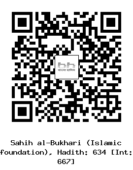 ৬৩৪। ইসমাইল (রহঃ) ... মাহমুদ ইবনু রাবী’ আল আনসারী (রাঃ) থেকে বর্ণিত, তিনি বলেন, ইতবান ইবনু মালিক (রাঃ) তাঁর নিজ গোত্রের ইমামতি করতেন। তিনি ছিলেন অন্ধ। একদিন তিনি রাসূল সাল্লাল্লাহু আলাইহি ওয়াসাল্লাম কে বললেন। ইয়া রাসূলাল্লাহ! কখনো কখনো ঘোর অন্ধকার ও বর্ষণ প্রবাহ হয়ে পড়ে। অথচ আমি একজন অন্ধ ব্যাক্তি। ইয়া রাসূলাল্লাহ! আপনি আমার ঘরে কোন একস্থানে সালাত (নামায/নামাজ) আদায় করুণ, যে স্থানটিকে আমার সালাতের স্থান হিসেবে নির্ধারন করবো। তারপর রাসূল সাল্লাল্লাহু আলাইহি ওয়াসাল্লাম তাঁর ঘরে এলেন এবং বললেনঃ আমার সালাত আদায়ের জন্য কোন জায়গাটি তুমি ভালো মনে কর? তিনি ইশারা করে ঘরের জায়গা দেখিয়ে দিলেন। রাসূল সাল্লাল্লাহু আলাইহি ওয়াসাল্লাম সেখানে সালাত আদায় করলেন।