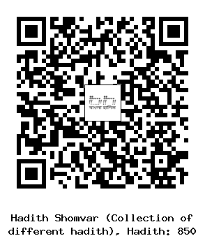 (৮৫০) আবূ হুরাইরা (রাঃ) কর্তৃক বর্ণিত, রাসূলুল্লাহ সাল্লাল্লাহু আলাইহি ওয়াসাল্লাম বলেছেন, আল্লাহ বলেন, যে ব্যক্তি আমার অলীর বিরুদ্ধে শত্রুতা পোষণ করবে, আমি তার বিরুদ্ধে যুদ্ধ ঘোষণা করব। বান্দা যা কিছু দিয়ে আমার নৈকট্য লাভ করে থাকে তার মধ্যে আমার নিকট প্রিয়তম হল সেই ইবাদত, যা আমি তার উপর ফরয করেছি। আর সে নফল ইবাদত দ্বারা আমার নৈকট্য অর্জন করতে থাকে। পরিশেষে আমি তাকে ভালোবাসি।