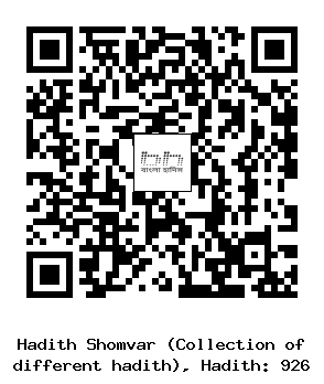 (৯২৬) আদী ইবনে হাতেম (রাঃ) বলেন, আমি নবী সাল্লাল্লাহু আলাইহি ওয়াসাল্লাম কে বলতে শুনেছি, তোমরা জাহান্নাম থেকে বাঁচো; যদিও খেজুরের এক টুকরো সাদকাহ করে হয়! (যদি এক টুকরা খেজুরও না পাও, তবে উত্তম কথা বলে।)