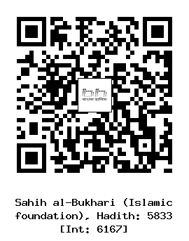 ৫৮৩৩। মূসা ইবনু ইসমাঈল (রহঃ) ... মুআয ইবনু জাবাল (রাঃ) বলেন, আমি একবার নবী সাল্লাল্লাহু আলাইহি ওয়াসাল্লাম এর পেছনে তার সওয়ারীর উপর বসা ছিলাম। তখন তিনি আমাকে ডাকলেনঃ ওহে মুআয! আমি বললাম, লাব্বায়কা ওয়া সাদায়কা। তারপর তিনি অনুরূপ তিনবার ডাকলেন। এর পর তিনি বললেনঃ তুমি কি জানো যে, বান্দাদের উপর আল্লাহর হক কি? তিনি বললেনঃ তা হল বান্দারা তার ইবাদত করবে আর এতে তার সঙ্গে কোন কিছুকে শরীক করবে না। আবার কিছুক্ষণ চলার পর তিনি বললেনঃ ওহে মুআয! আমি জবাবে বাললামঃ লাব্বায়কা ওয়া সাদায়কা। তখন তিনি বললেনঃ তুমি কি জানো যে, বান্দা যখন তার ইবাদত করবে, তখন আল্লাহর উপর বান্দাদের হক কি হবে? তিনি বললেনঃ তা হল এই যে, তিনি তাদের আযাব দিবেন না।