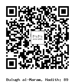 ৮৯। মুগীরাহ বিন শু’বা (রাঃ) হতে বৰ্ণিত। তিনি বলেন, আল্লাহর রসূল সাল্লাল্লাহু আলাইহি ওয়াসাল্লাম আমাকে বললেন, ’পানির পাত্রটি নাও, তারপর তিনি সামনে চলতে থাকলেন এবং আমার দৃষ্টির আড়ালে গিয়ে প্রয়োজন পূর্ণ করলেন”।[1]