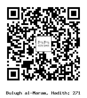 ২৭১. আবূ হুরাইরা (রাঃ) হতে বৰ্ণিত। তিনি বলেন, আল্লাহর রসূল সাল্লাল্লাহু আলাইহি ওয়াসাল্লাম তাকবীরে তাহরীমা ও কিরাআতের মধ্যে কিছুক্ষণ চুপ করে থাকতেন। আমি তাঁকে এ সম্বন্ধে জিজ্ঞেস করায় তিনি বললেন- এ সময় আমি বলি- (অর্থঃ) “হে আল্লাহ! আমার এবং আমার গুনাহের মধ্যে এমন ব্যবধান করে দাও যেমন ব্যবধান করেছ পূর্ব এবং পশ্চিমের মধ্যে। হে আল্লাহ আমাকে আমার গুনাহ হতে এমনভাবে পবিত্র কর যেমন সাদা কাপড় ময়লা থেকে পরিষ্কার হয়। হে আল্লাহ আমার গোনাহকে বরফ, পানি ও শিশির দ্বারা ধৌত করে দাও”।[1]