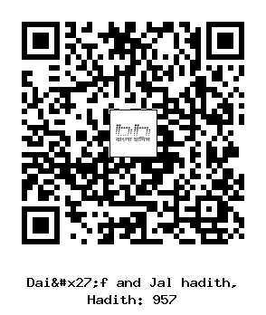 ৯৫৭। দুনিয়াকে আল্লাহ তা’আলা আমার জন্য উঁচু করে রেখেছেন। আমি তার দিকে এবং কিয়ামত দিবস পর্যন্ত তাতে যা কিছু ঘটবে সে দিকে দৃষ্টি দিব যেমনভাবে আমি দু’ হাতের এই তালুর দিকে দৃষ্টি দিচ্ছি। আল্লাহর নির্দেশে তাঁর নবীর জন্য তা প্রকাশ করে দেয়া হয়েছে যেমনিভাবে তিনি তাঁর পূর্ববর্তী নবীদেরকে প্রকাশ করে দিয়েছিলেন।