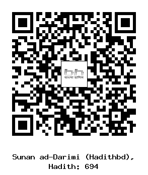 ৬৯৪. খুযাইমাহ ইবনু ছাবিত আল আনসারী তার পিতা (ছাবিত) রাদ্বিয়াল্লাহু আনহু হতে বর্ণনা করেন, তিনি বলেন, রাসূলুল্লাহ সাল্লাল্লাহু আলাইহি ওয়া সাল্লাম (ইস্তিনজার সময় কয়টি পাথর ব্যবহার করা উচিত- এ মর্মে জিজ্ঞাসিত হয়ে) বলেছেন: তিনটি পাথর, যার মধ্যে গোবর থাকবে না। এর অর্থ: পবিত্রতা অর্জনের জন্য।[1]