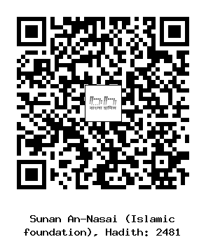 ২৪৮১. ইসমাঈল ইবন মাসউদ (রহঃ) ... আমর ইবন শুয়াইব এর পিতার মাধ্যমে তাঁর দাদা থেকে বর্ণিত যে, এক ইয়ামানী মহিলা এবং তার কন্যা রাসূলুল্লাহ সাল্লাল্লাহু আলাইহি ওয়াসাল্লাম-এর কাছে আসল, তার কন্যার হাতে দু’টি পুরু স্বর্ণের কাঁকন ছিল। রাসূলুল্লাহ্ সাল্লাল্লাহু আলাইহি ওয়াসাল্লাম জিজ্ঞাসা করলেন, তুমি কি এগুলোর যাকাত আদায় করেছ? সে বলল, না। রাসূলুল্লাহ সাল্লাল্লাহু আলাইহি ওয়াসাল্লাম বললেন, তুমি কি এটা পছন্দ কর যে, আল্লাহ তা’আলা কিয়ামতের দিন তোমাকে এ দু’টি কাঁকনের পরিবর্তে আগুনের দুটি কাঁকন পরান? রাবী বলেন, তখন সে দুটি কাঁকনই খুলে রাসূলুল্লাহ্ সাল্লাল্লাহু আলাইহি ওয়াসাল্লাম-কে দিয়ে দিল এবং বলল যে, এ দুটিই আল্লাহ্ এবং তদীয় রাসূল সাল্লাল্লাহু আলাইহি ওয়াসাল্লাম এর জন্য।
