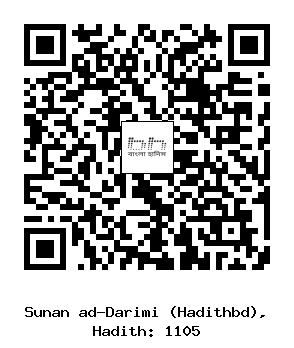১১০৫. কাসিম আয়িশা রাদ্বিয়াল্লাহু আনহা থেকে বর্ণনা করেন যে, নবী সাল্লাল্লাহু আলাইহি ওয়া সাল্লাম তাকে বলেন, “আমাকে ’খুমরাহ’ বা জায়নামাযটি এনে দাও।” তখন তিনি বললেন যে, আমার তো হায়িয হয়েছে। তখন তিনি (নবী সাল্লাল্লাহু আলাইহি ওয়া সাল্লাম) বললেন: “তা (তোমার হায়িয) তো আর তোমার হাতে হয়নি।”[1]