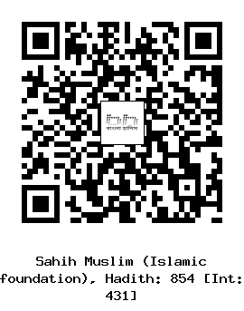 ৮৫৪। আবূ বকর ইবনু আবূ শায়বা (রহঃ) ও আবূ কুরায়ব (রহঃ) ... জাবির ইবনু সামুরা (রাঃ) থেকে বর্ণিত যে, তিনি বলেন, আমরা যখন রাসুলুল্লাহ সাল্লাল্লাহু আলাইহি ওয়াসাল্লাম এর সংগে সালাত (নামায/নামাজ) আদায় করতাম, তখন সালাত শেষে ডান-বাম দিকে হাত ইশারা করে ’আসসালামু আলাইকুম ওয়া রহমাতুল্লাহ’ ’আসসালামু আলাইকুম ওয়া রহমাতুল্লাহ’ বলতাম। তাতে রাসুলুল্লাহ সাল্লাল্লাহু আলাইহি ওয়াসাল্লাম বললেন, তোমরা চঞ্চল ঘোড়ার লেজ নাড়ার মত হাত ইশারা করছ কেন? (সালাতের বৈঠকে) উরুর ওপর হাত রেখে ডানে-বামে অবস্থিত তোমাদের ভাইকে (মুখ ফিরিয়ে) ’আসসালামু আলাইকুম ওয়া রহমতূল্লাহ’ বলাই তোমাদের জন্য যথেষ্ট।