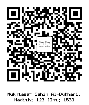 ১২৩ـ عَنْ أَبِي قَتَادَةَ قَالَ: قَالَ رَسُولُ اللَّهِ إِذَا شَرِبَ أَحَدُكُمْ فَلا يَتَنَفَّسْ فِي الانَاءِ، وَإِذَا أَتَى الْخَلاءَ فَلا يَمَسَّ ذَكَرَهُ بِيَمِينِهِ وَلا يَتَمَسَّحْ بِيَمِينِهِ. (بخارى:১৫৩)