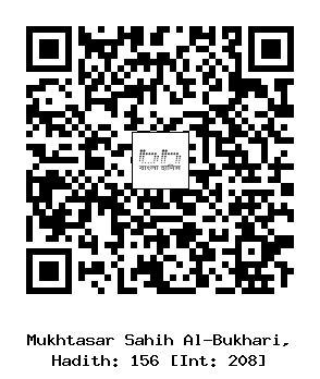 ১৫৬) আমর বিন উমাইয়া যামরী (রাঃ) হতে বর্ণিত, তিনি বলেন যে, তিনি নবী সাল্লাল্লাহু আলাইহি ওয়া সাল্লামকে বকরীর কাঁধের মাংস ছুরি দিয়ে কাটতে দেখেছেন। এমন সময় নামাযের আযান হয়ে গেলে ছুরি রেখে দিয়ে নামায আদায় করলেন। কিন্তু অযু করলেন না।