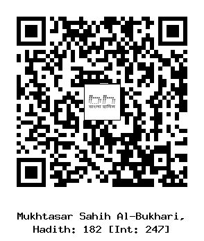 ১৮২ـ عَنِ الْبَرَاءِ بْنِ عَازِبٍ قَالَ: قَالَ النَّبِيُّ إِذَا أَتَيْتَ مَضْجَعَكَ فَتَوَضَّأْ وُضُوءَكَ لِلصَّلاةِ، ثُمَّ اضْطَجِعْ عَلَى شِقِّكَ الأَيْمَنِ، ثُمَّ قُلِ: اللَّهُمَّ أَسْلَمْتُ وَجْهِي إِلَيْكَ، وَفَوَّضْتُ أَمْرِي إِلَيْكَ، وَأَلْجَأْتُ ظَهْرِي إِلَيْكَ، رَغْبَةً وَرَهْبَةً إِلَيْكَ لا مَلْجَأَ وَلا مَنْجَا مِنْكَ إِلا إِلَيْكَ، اللَّهُمَّ آمَنْتُ بِكِتَابِكَ الَّذِي أَنْزَلْتَ، وَبِنَبِيِّكَ الَّذِي أَرْسَلْتَ، فَإِنْ مُتَّ مِنْ لَيْلَتِكَ فَأَنْتَ عَلَى الْفِطْرَةِ، وَاجْعَلْهُنَّ آخِرَ مَا تَتَكَلَّمُ بِهِ، قَالَ: فَرَدَّدْتُهَا عَلَى النَّبِيِّ فَلَمَّا بَلَغْتُ: اللَّهُمَّ آمَنْتُ بِكِتَابِكَ الَّذِي أَنْزَلْتَ، قُلْتُ: وَرَسُولِكَ، قَالَ لا، وَنَبِيِّكَ الَّذِي أَرْسَلْتَ. (بخارى:২৪৭)