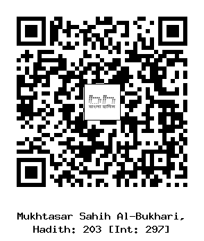 ২০৩) আয়েশা (রাঃ) হতে বর্ণিত, তিনি বলেনঃ আমার হায়েয (মাসিক) থাকা অবস্থায় নবী সাল্লাল্লাহু আলাইহি ওয়া সাল্লাম (কখনও কখনও) আমার কোলে হেলান দিয়ে কুরআন তেলাওয়াত করতেন।