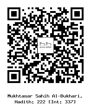 ২২২) আবু জুহাইম বিন হারেছ আনসারী (রাঃ) হতে বর্ণিত, তিনি বলেনঃ একদা নবী সাল্লাল্লাহু আলাইহি ওয়া সাল্লাম ‘বি’রে জামাল’ নামক স্থান থেকে আগমণ করলেন। এ সময় তাঁর সাথে এক ব্যক্তির সাক্ষাৎ হল। সে নবী সাল্লাল্লাহু আলাইহি ওয়া সাল্লামকে সালাম দিল। তিনি সালামের জবাব না দিয়ে একটি দেয়ালের দিকে গেলেন। দেয়ালে হাত মেরে মুখমণ্ডল এবং উভয় হাত মাসেহ করলেন। অতঃপর সালামের উত্তর দিলেন।