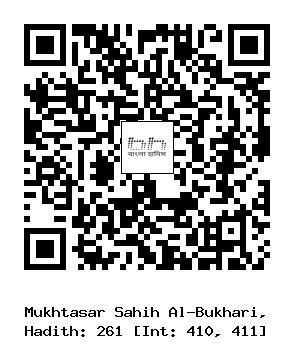 ২৬১) আবু হুরায়রা এবং আবু সাঈদ খুদরী (রাঃ) হতে বর্ণিত, একদা রাসূল সাল্লাল্লাহু আলাইহি ওয়া সাল্লাম মসজিদের দেয়ালে কফ (থুথু জাতীয় বস্ত্ত) দেখতে পেয়ে হাতে একটি পাথর নিয়ে তা দ্বারা ঘসে থুথ পরিষ্কার করলেন। অতঃপর তিনি বললেনঃ তোমাদের কেউ যেন কিবলার দিকে কফ (থুথু) না ফেলে। এমনকি ডান দিকেও না। একান্ত যদি থুথু ফেলতেই হয় তবে বাম দিকে অথবা বাম পায়ের নীচে ফেলবে।