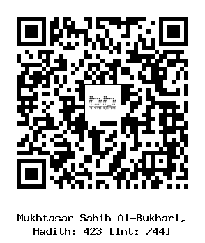 ৪২৩) আবু হুরায়রা (রাঃ) হতে বর্ণিত, তিনি বলেনঃ রাসূল সাল্লাল্লাহু আলাইহি ওয়া সাল্লাম তাকবীরে তাহরীমা পাঠ এবং সূরা ফাতিহা পাঠ করার মাঝখানে কিছুক্ষণ চুপ থাকতেন। আমি বললামঃ হে আল্লাহর রাসূল! আমার মা-বাবা আপনার জন্য কুরবান হোক! তাকবীরে তাহরীমা এবং কিরাআত পাঠ করার মাঝখানে কিছুক্ষণ চুপ থেকে আপনি কি পাঠ করেন? তিনি বলেনঃ আমি পাঠ করিঃ