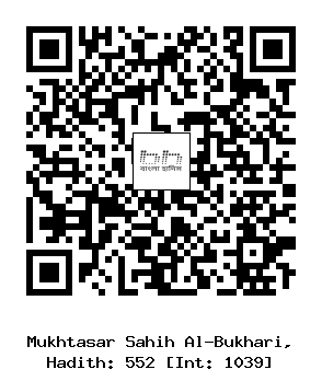 ৫৫২) আব্দুল্লাহ ইবনে উমার (রাঃ) হতে বর্ণিত, রাসূল সাল্লাল্লাহু আলাইহি ওয়া সাল্লাম বলেছেনঃ গায়েবের চাবি পাঁচটি, আল্লাহ ছাড়া কেউ তা জানে না। আগামীকাল কি হবে আল্লাহ ছাড়া তা কেউ জানে না। মাতৃগর্ভে কি আছে তা আল্লাহ ছাড়া কেউ জানে না। ব্যক্তি আগামীকাল কি অর্জন করবে তা অবগত নয়। কোন ব্যক্তিই জানে না কোন্ যমিনে সে মৃত্যু বরণ করবে। বৃষ্টি কখন হবে তা কেউ জানে না।