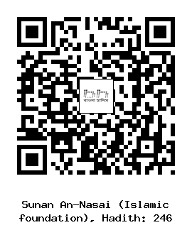 ২৪৬। মাহমূদ ইবনু গায়লান (রহঃ) ... আতা ইবনু সায়িব (রাঃ) থেকে বর্ণিত। তিনি বলেনঃ আমি আবূ সালামাহ (রাঃ) কে বলতে শুনেছি যে, তিনি আয়িশা (রাঃ) এর নিকট গিয়ে রাসুলুল্লাহ সাল্লাল্লাহু আলাইহি ওয়াসাল্লাম এর জানাবাতের গোসল সম্পর্কে জিজ্ঞাসা করেন। উত্তরে তিনি বলেনঃ রাসুলুল্লাহ সাল্লাল্লাহু আলাইহি ওয়াসাল্লাম এর নিকট পানির পাত্র আনা হলে নিজ হাত তিনবার পানি ঢেলে ধৌত করেন। তারপর তিনি ডান হাত দ্বারা বাম হাতে পানি ঢালতেন। সে পানি দ্বারা উভয় উরু ধৌত করতেন। পরে উভয় হাত ধৌত করতেন, কুলি করতেন এবং নাক পরিষ্কার করতেন। এরপর মাথায় তিনবার পানি ঢালতেন। এরপর সমস্ত শরীরে পানি ঢালতেন।